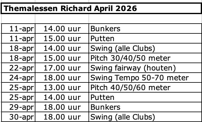 Interesse voor de themalessen? Registreer je dan in de online agenda van Richard Perkins en ontvang maandelijks het themalessen schema. Een mail sturen kan natuurlijk ook. Nieuwsgierig naar de volgende themalessen? Zie dan het bijgevoegd schema voor de maand april.