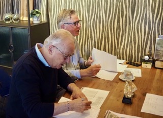hun ervaringen delen. Voordat eenieder zich tegoed kon doen een het buffet was er natuurlijk de prijsuitreiking door onze voorzitter Georg Kienstra. Het hoogtepunt van de prijsuitreiking was de uitreiking van de wisselbekers voor de dame en de heer met de beste netto score van de dag. Zij mogen zich een jaar lang vrijwilliger van het jaar noemen.