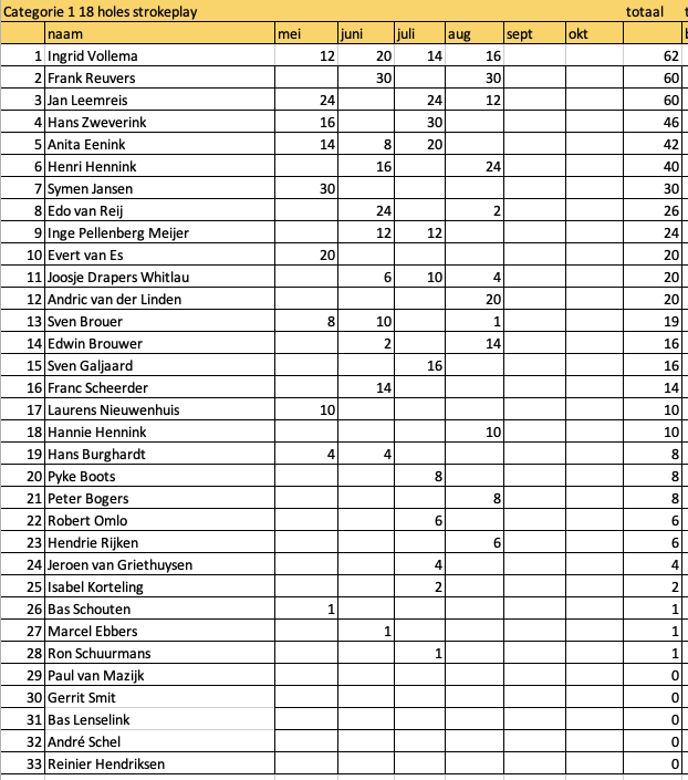 Meer dan 60 leden hebben één of meerdere keren meegespeeld. En telkens met veel enthousiasme werden de stableford punten bijeen geslagen.