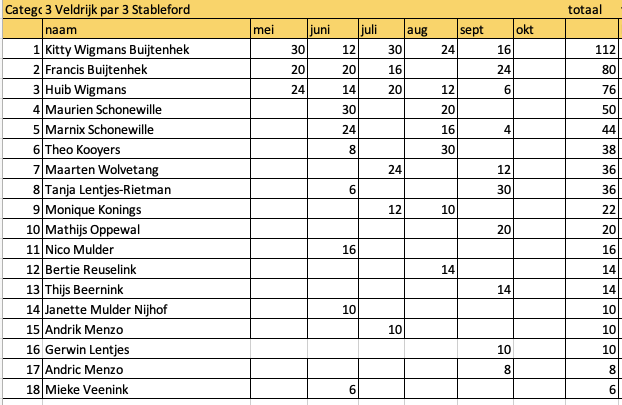 Voor de belangstellenden, het gehele score overzicht is te vinden op het tabblad van de wedstrijdcommissie.